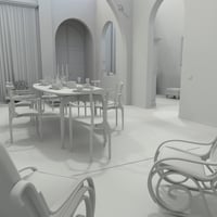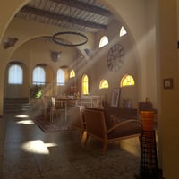 A beautiful interior scene composed of Roman arches and equipped with many independent props.