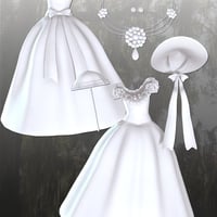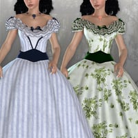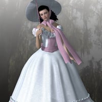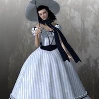 Southern Belle outfit for Genesis 2 Females reflects the lovely and romantic style of the Antebellum Era. With its full skirt, ruffled, off-the-shoulder bodice, parasol, stunning choker and earrings, large sunhat, and lots and lots of ribbon, Southern Belle outfit is the epitome of elegance and femininity. Eight poses are included with this product as well as many morphs for the gown, hat, and parasol.