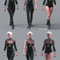 The included Nyx Material Preset brings the suit to life with a modern finish, and users can personalize the emissive colors to match any scene or style. Additionally, the outfit comes with a variety of opacity presets that dramatically transform its appearance - from modest and professional to bold and eye-catching.