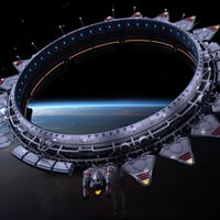 Space Gate. A machine for creating an interspace portal to quickly move a spaceship from one star system to another. The design consists of a movable rotor to create a field of curvature of space, antennas, devices and fuel tanks. The portal funnel is included. Explore!What's Included and Features