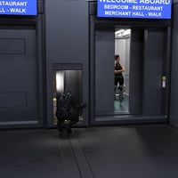 The add-on is composed of 4 areas: a registration hall with a vending machine, a water closet with 2 separate doors, a security room with a prison cell, and an elevator with access to his maintenance zone.