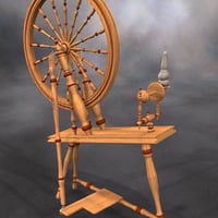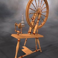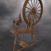 The spinning wheel is a prop that comes in two pieces: the main body and the wheel, which is parented to the body and can be rotated. The prop also includes two textures - one dark and aged, the other light and new.