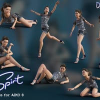 Spirit Poses for Aiko 8 have been carefully designed for a realistic, natural look. All poses will look good from different camera views including close up. There are 20 poses plus a reset pose. There's a combination of elegant model style poses, dynamic movement and everyday poses perfect for your 3d art projects. Some poses will work better with Limits turned off.