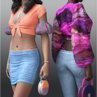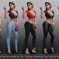 It includes earrings, a handbag, shoes, a top, and pants. With 5 full texture presets, heaps of customizable presets, and lots of adjustment morphs.