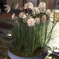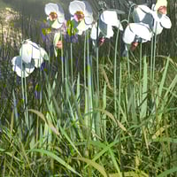 Some times called the Poets Narcissus - a classic white variety with an orange cup, and often associated with the myth of Narcissus where a beautiful youth is punished for admiring his own reflection by being turned in to one of these beautiful flowers!!