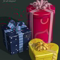 The boxes load as smart-propped sets, consisting of box, lid, ribbon and bow. The items can be moved or deleted as you wish. The presets come in three sizes, the textures will fit each size perfectly.
