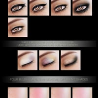 Complete makeup resource for creating your own Genesis 3 Female character skin. Eye shadows, eye liners, lips, blush and contour!