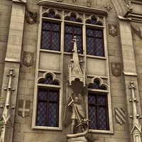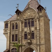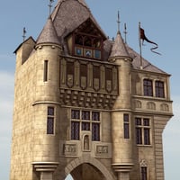 This gate which used to be one of the entrances to the city of Paris, features two very different styles. One being clearly medieval, military in style, with strong fortifications, while the other is at the transition of late medieval and renaissance, more airy and decorative in style. Included are two crenelated walls of different sizes to match the gate.