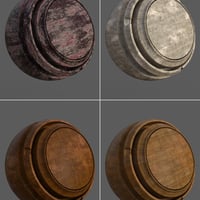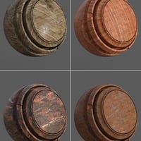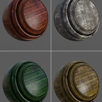 These wood shaders have stains and imperfections engrained into the wood surface. They have a large variety of patterns that can be used for various props including jewelry, furniture, floors, and other props that require a wood surface.