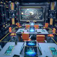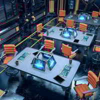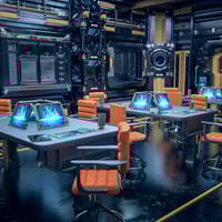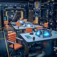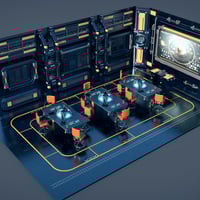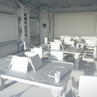 It includes a sci-fi room, HUD screens, desks, and chairs in the scene. All are ready to render in Iray.