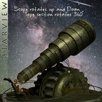 High above the clouds where you can almost touch the stars, an ancient telescope lies long forgotten. Discover Star View, a four part set that loads in a snap. The telescope figure has a rotating base and elevating scope. The large stone mountain is an easy to use prop with a landing pad and stair prop that load separate.