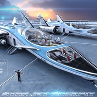 The Starjet cockpit includes 4 files to control the Starjet large windshield opacity and a cockpit interior lights preset file.All IRAY PBR materials load automatically. Many lights and displays details bright in darkness. A 3delight materials file is also included.