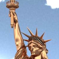 The Statue of Liberty is a colossal neoclassical sculpture on Liberty Island in the middle of New York Harbor, in Manhattan, New York City. The statue, designed by Frederic Auguste Bartholdi and dedicated on October 28, 1886, was a gift to the United States from the people of France. The statue is of a robed female figure representing Libertas, the Roman goddess of freedom, who bears a torch and a tabula ansata (a tablet evoking the law) upon which is inscribed the date of the American Declaration of Independence, July 4, 1776. A broken chain lies at her feet. The statue is an icon of freedom and of the United States: a welcoming signal to immigrants arriving from abroad.