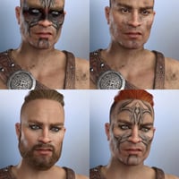 With custom sculpted HD head and body morphs, Sten comes with fiberhair brows, beard and anatomical hair in eight color options. Five eye colors, dirt layer geoshells and a variety of mix and match LIE face paints, eyeliner and face and body tattoos complete the package for this historical adventurer...