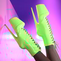 These towering heels have a sleek, high-shine finish with a dramatic silhouette that elongates the legs. Pair these with your favorite dresses, skinny jeans, or dramatic performance attire.