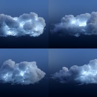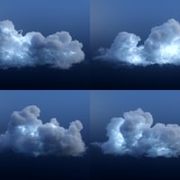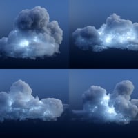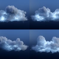 Inside this set you will find 20 different VDB based clouds which have been custom tailored to provide a stormy atmosphere. Each one of these clouds loads alongside unique internal lightning structures producing light from within. Larger clouds include two separate internal lightning props.