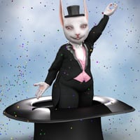 The StoryBook Rabbit character has one master control for the whole character, that controls several other morph dials.. This gives you the option to use the regular Rabbit Ears or the Lop Ears or to use another ear morph entirely. The ears have been specially set up not to distort hair and headwear.
