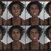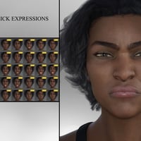 Choose the best face for each situation and express what you want, "The Strong Woman" contains 40 Expressions for Monique 8 divided into categories: Angry, Flirty, Happy, Pain and Serious.