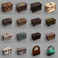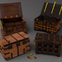 Each of the four chests and the three padlocks are fully articulated. Many material presets are included so you can choose