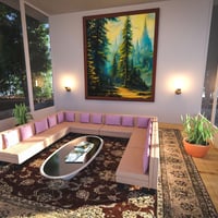 Welcome to the Stylish Orange Comfort room, a perfect blend of artistry and relaxation, ideal for hosting friends and family or even conducting business.
