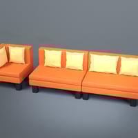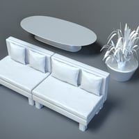 It includes three modular couch props that can be arranged in various configurations, multiple material presets, a coffee table with Magazines, and a potted plant to complete the scene.