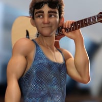 The Stylized '21 Character and Hair for Genesis 8 and 8.1 Male turns the base male into a Western stylized cartoon character. Featuring large expressive eyes and glowing skin tones, this character looks like he stepped out of an animated feature film.