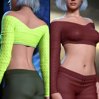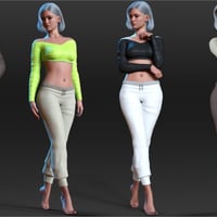 Featuring: A flattering off shoulder crop top that enhances the silhouette. High-waisted jogger pants with realistic folds and texture details. Multiple material zones for easy customization. Perfect fit for dynamic poses and close-up shots. Let your character move with grace, comfort, and a touch of irresistible charm.