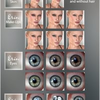 Erin – a sensual blonde – is her own twin: She comes along with a Custom Head Morph and a dialed Body for Victoria 4 for but also has her own complete Custom Morph for the brand new Genesis figure. Advanced Poser Materials and Elite Human Surface Shader DS Mats are included so whatever application and figure you prefer Erin will be the perfect choice.