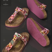 A lovely and comfortable pair of sandals for all your Genesis 8 female characters. Also included are separate right and left props for scene decoration. Eight choices of colors, all with a clean and new or well loved option. Both Iray and 3Delight materials are included!