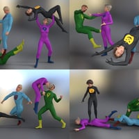 Super Conflict also includes 12 individual poses, plus their mirrors, for your heroes and villains in action, both in the air and on the ground. The tops and bottoms of these poses can be mixed and matched with each other, or used to modify the pairs of fighting poses. Individual arm, leg, hand, and foot poses can be used to modify all of these poses for thousands of variations.