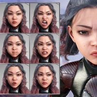 Superhero - Expressions for Genesis 8 Female and Sukai 8 contains 40 detailed and realistic expressions divided into Angry, Happy, Sad and Surprised categories. Use morph dials and mix them to create new facial expressions in seconds.