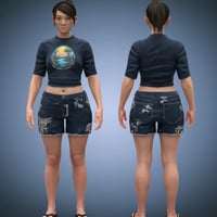 Surfs Up Outfit for Genesis 9 is essentially 2 outfits in 1 with a 2 piece bikini set, shorts, and a rash guard top, and a set of sandals.