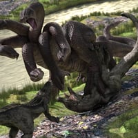 The Hydra is a vicious monster of the swamps, famed for both its healing power and the virulence of its poisonous blood. Some claim it is related to true dragons, while others proclaim it to be a demon in monstrous form. Whatever its origin, it's definitely a good reason to not travel alone through the badlands!