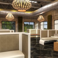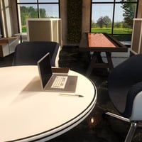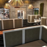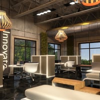The Swedish Office is the face of modern office environments. A mix of industrial and a contemporary touch makes a truly unique workspace. The ferns on the wall offer oxygen and a natural vibe to the room, surrounded with large windows and a green environment outside.