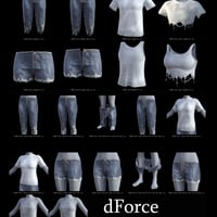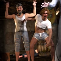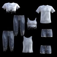 Now you can dress Genesis 9 in rags! Zombies, survivors, people on a mudding weekend, or being chased by a slasher through the woods, whatever reason your characters are ragged and dirty, you can make them that way with this set! Featuring a shirt, tank top, pants, cutoff shorts, and open-fly versions of the pants and shorts, plus special short versions of the tops, these contemporary rags are flexible and easy to use. dForce settings are included to make it easier to make clothes clingier or looser and control whether or not the open pants/shorts fall. Every pair of pants and the bigger shirts have two different transmap options. Adding these to the intact texture options, and the included blood and dirt LIEs, you can show your characters' full progression through visual storytelling.