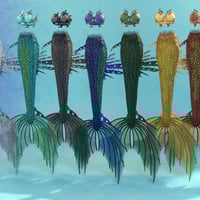 The popular SY Merfolk comes to Genesis 9! This set contains a conforming tail with a geograft alternate tail end and conforming hip fins and optional lionfish fins. There are 7 full texture sets in 2 different patterns for all of the pieces and a full character set for Genesis 9 (incorporating both nipple and all anatomical element combinations so masc, femme, and physically trans or non-binary characters are possible). The character morphs include HD nipple and navel morphs as well as the male and female characters. Not only that, but the set has 20 hierarchical poses for Genesis 9 and the tail, plus mirrored versions and versions optimized for both the male and female morph.