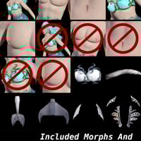 As stated, morphs and textures are included, but the tail and conformers will work with other character morphs or texture combinations from your Genesis 9 library. Not only that, but the makeup options are done with geoshells, so they too can go over any skin. Add flexible merfolk to your renders today!