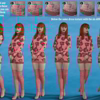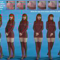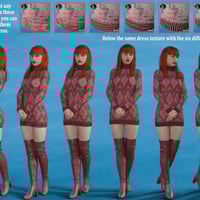 Twelve different textures are included: twelve for the boots and twelve for the dress. Additionally, you receive six textures for dress trims that you may apply to any of the dress textures. Please see the promos.