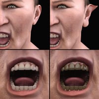 So many options to play with: one facial paint, white or greenish teeth, Pinkish, Yellow or Green Eye Moisture, normal or fantasy ears.