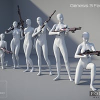 This Tactical shotgun has multiple posable attachments including a fore end, reflective sight, ammo belt, trigger, flashlight. It has 6 texture options, military, gangster and one particular female style. There are also 6 base pose presets for Genesis 2 Male & Female and Genesis 3 Female. Hope you like it.