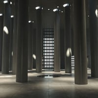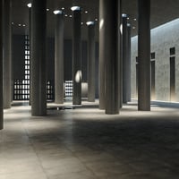 Set amongst 223 lights, all controlled with an IES profile that replicate a starfield effect within the vast halls of the building. There are 4 light groups, each controlled with a master light and instances, change the master and the all the linked lights will change with it. There are decorative block windows surrounding the building, which allow natural light to flood into the rooms, creating a wonderful light effect.