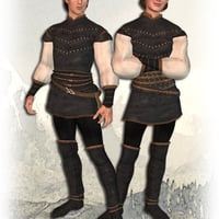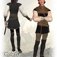 In this outfit that matches the 'Tales of Adventure' for David, Stephanie is ready for whatever your imagination can thro at her! Stand aside scantily clad Victoria, real adventurers wouldn't risk the navel scars! Whether your heroine is into slaying dragons or a simple forest ranger she will be aptly attired in studded leather or beautifully embellished fabric!