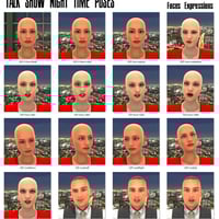 30 distinct and unique poses for Genesis 2 Male and Genesis 2 Female, for a total of over 60 unique full body poses, provide accurate guest and host interaction as would be seen on a real studio set and include Stand up monologue poses for the host, as well as greetings, interactions between guests, and a few more risque poses as well. The Genesis 2 Females poses are designed with a 3 inch heel shoe in mind. The set includes 2 utility poses to change feet from flat to heel and vice versa. There are also a number of speaking facial expressions, and face and neck reset poses. Use the face reset in between various facial expression poses to get accurate representations. There are also 4 head turned poses that work with the facial poses and add to the versatility.