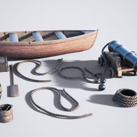 This detailed ship has beautifully sculpted statues on the rear and the deck. The ship is fully loaded with props, such as cannons, barrels, cannons balls, a bucket, and more. The set also comes with a small boat and paddle. There are poses for Genesis 8 and 8.1 Male and Female.