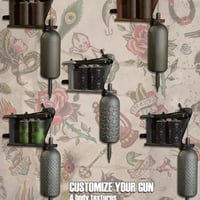 Now you can add the missing part of the story, how did they get there. With 4 Metal body styles, 3 different Chrome grip styles and 3 Solenoid Labels you can even customize your gun. Also included are the Paint Bottles and Paint Cups.
