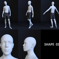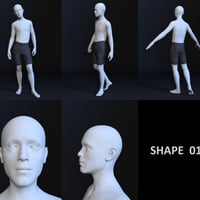 This set contains 5 custom full body and 5 custom full head shapes (as morph controls) to be used with Genesis 9. Several adjustment controls and full figure shape presets are included as well.