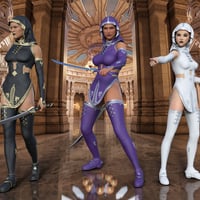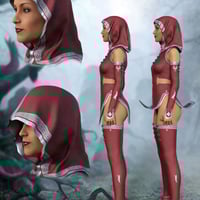 Templar Huntress for Genesis 8 Female(s) is a new fantasy outfit for Genesis 8 female, much in the theme of assassin' creed. Comes with a dress, leg length boots and arm length arm covers a hood and swords for both left and right hands plus matching panties. There are 10 material presets with gold and silver trim. There is left and right-hand sword grip poses so they can easily be applied after setting your poses, works great with "Quixotry's Poses for Autumn Soldier" and "GD Fierce Poses for Genesis 3 and 8 Female". Great for all your fantasy assassin scenes;