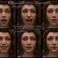 As a bonus I've created 6 unique expression morphs. They are available as either static 'one click' facial poses or as fluid expression morphs ideal for animations. I've also created Zero poses for the expressions and the poses.