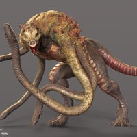 The fearsome Tentakill HD for Genesis 8.1 Male features a reptilian body, tentacled limbs, and a visage akin to a rotting lupine relic (a haunting reminder of the beast's primal ferocity and unrelenting hunger), all with extra teeth for added terror!