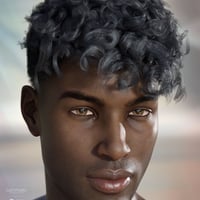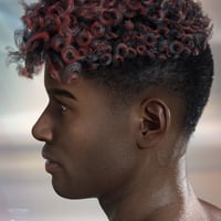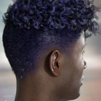 Terran Hair is a morphing polygonal model of men's tight curly hair, long on top with an undercut and low fade style. The hair has style and movement morphs and is fitted for Genesis 3 & 8 Male(s) (.DUF) with auto-conforming custom morphs for Daz Original characters.